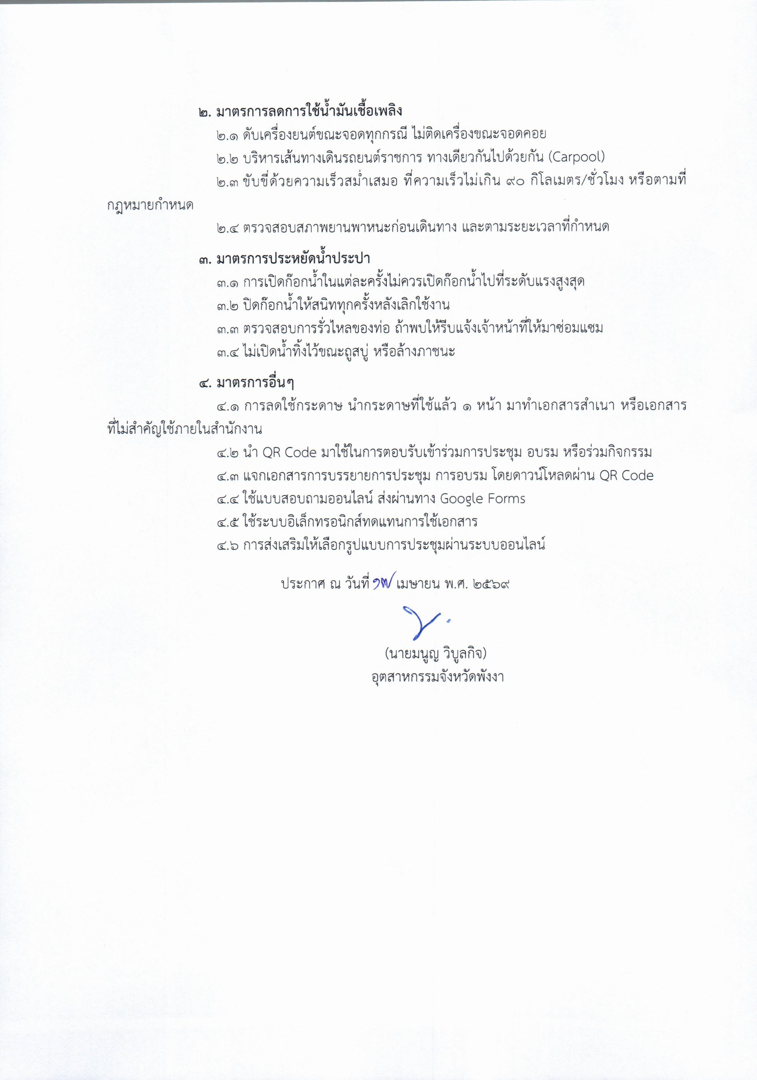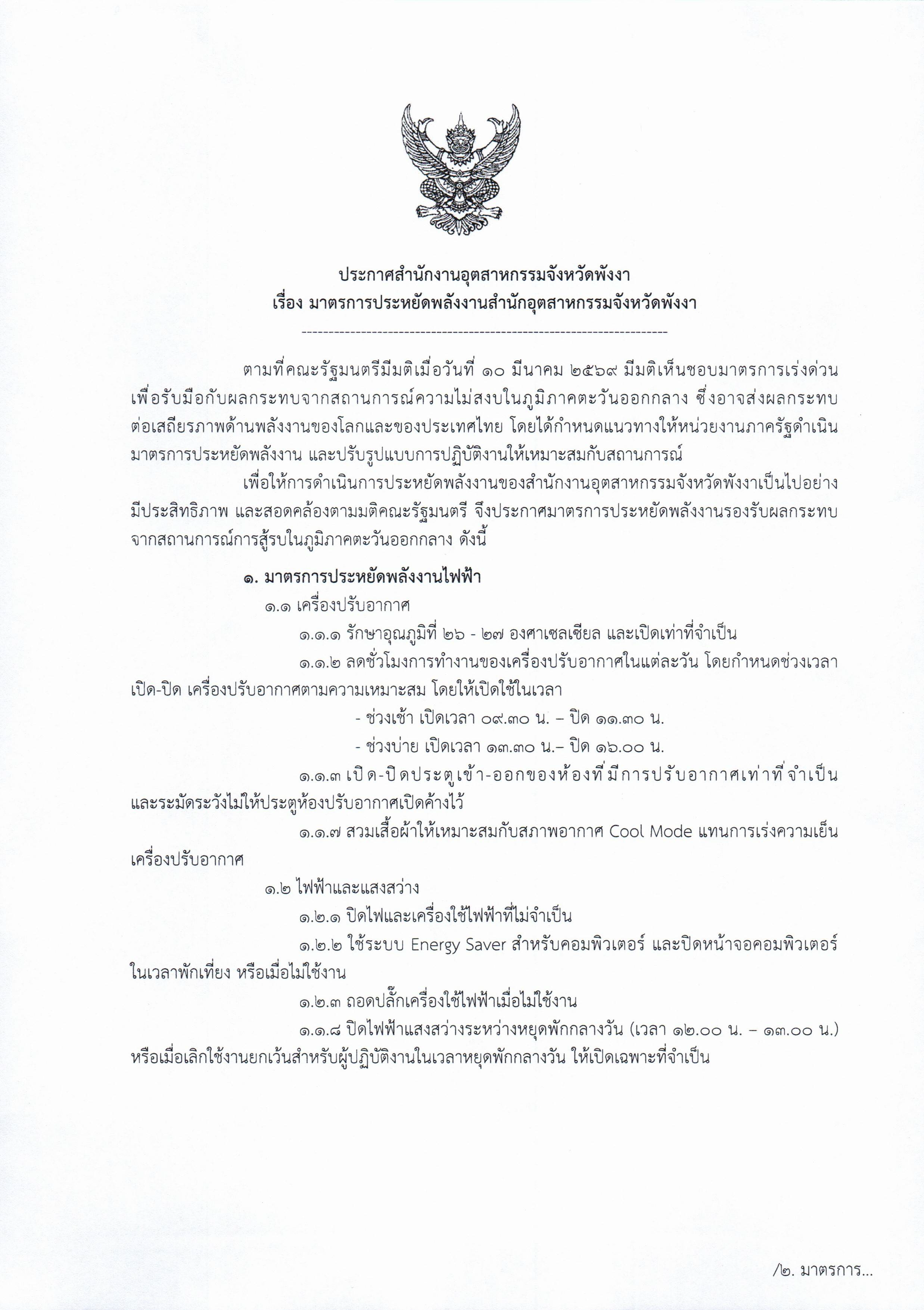 ประกาศสำนักงานอุตสาหกรรมจังหวัดพงงา เรื่อง มาตรการประหยัดพลังงานสำนักงานอุตสาหกรรมจังหวัดพังงา